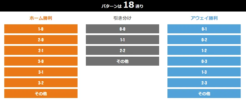 コレクトスコアとは、試合終了時の正確なスコアを予想する賭け方です。
