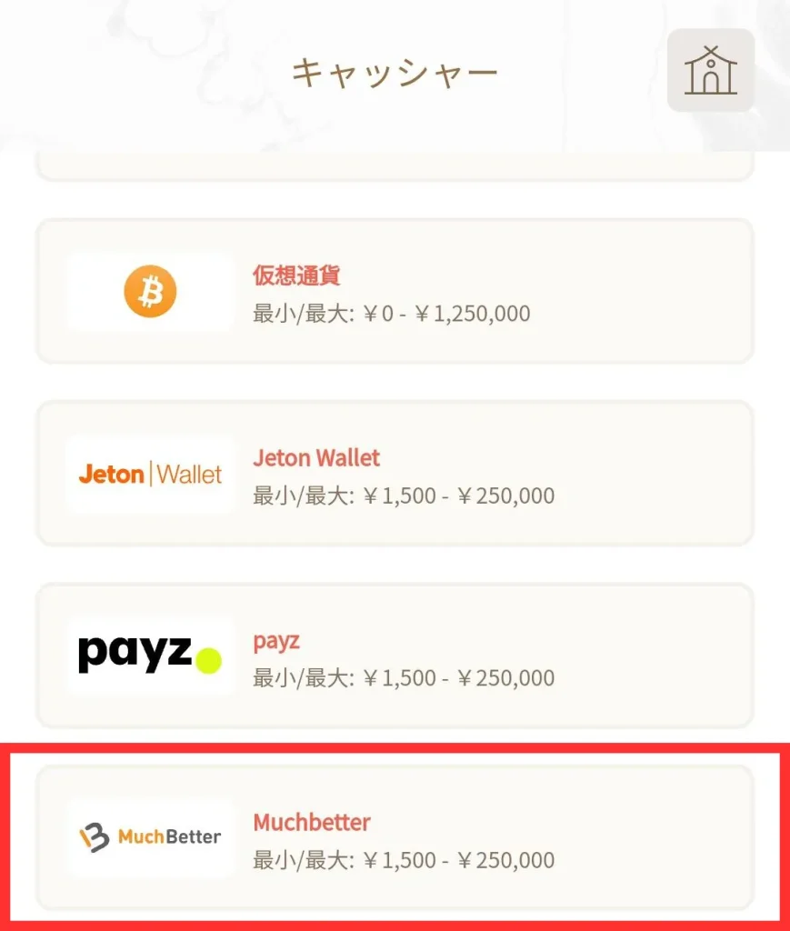 マッチベターに対応しているブックメーカーであれば、入金方法の選択肢にマッチベターがあるため、それを選択しましょう。