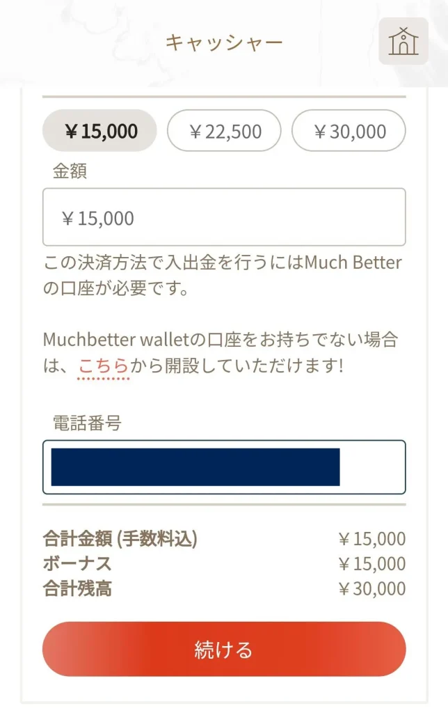 - マッチベターの口座に入金を行う