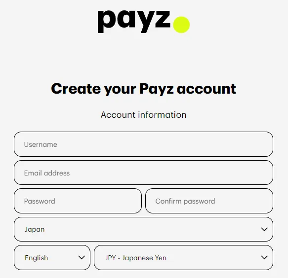 ペイズの登録画面ではまずアカウントの情報を入力します。